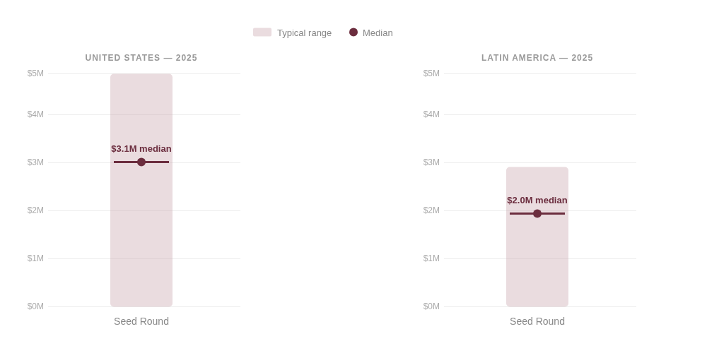 Sources: Carta, Crunchbase, Metal (U.S.); LAVCA Trends in Tech (Latin America). Data reflects 2025 figures.